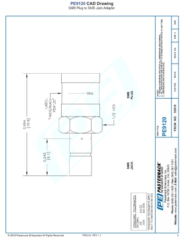 PE9120 CAD Drawing SMB Plug to SMB Jack Adapter PE9120 REV 1.1 4