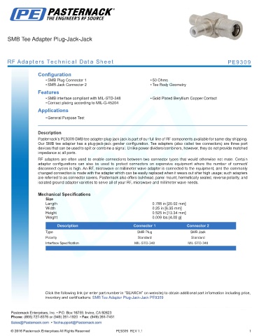 RF Adapters Technical Data Sheet PE9309