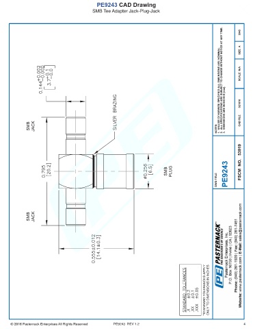 PE9243 CAD Drawing SMB Tee Adapter Jack-Plug-Jack PE9243 REV 1.2 4