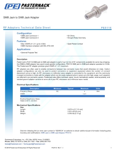Pasternack’s PE9116 SMB jack to SMB jack adapter is part of our full line of RF components available for same-day shipping.