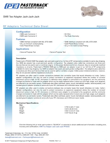 RF Adapters Technical Data Sheet PE9302