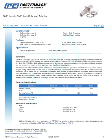 RF Adapters Technical Data Sheet PE9122