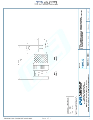 PE9132 CAD Drawing SMB Jack to BNC Male Adapter PE9132 REV 1.1 4