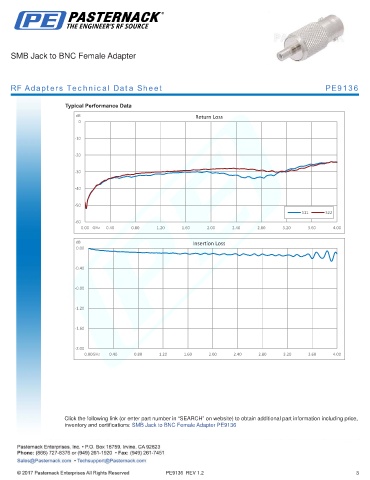 inventory and certifications: SMB Jack to BNC Female Adapter PE9136