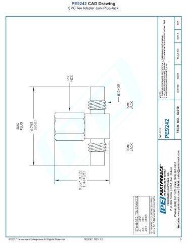 PE9242 CAD Drawing SMC Tee Adapter Jack-Plug-Jack PE9242 REV 1.2 5