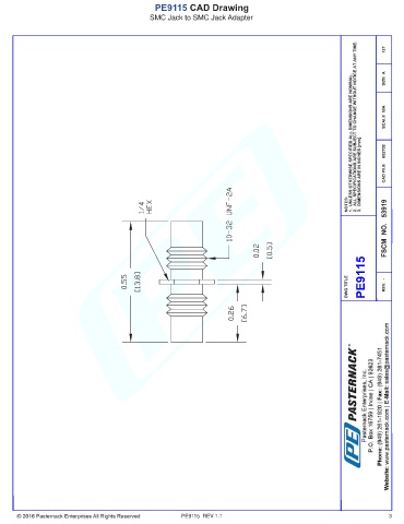 PE9115 CAD Drawing SMC Jack to SMC Jack Adapter PE9115 REV 1.1 3