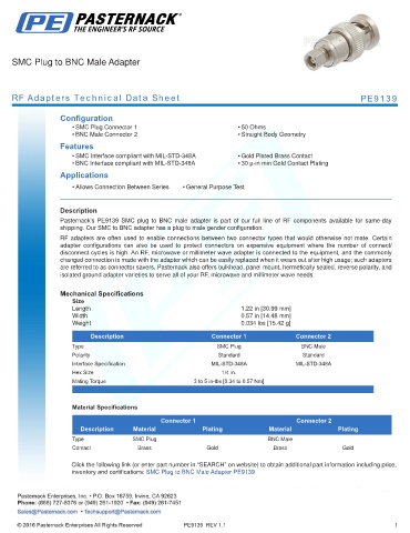 RF Adapters Technical Data Sheet PE9139
