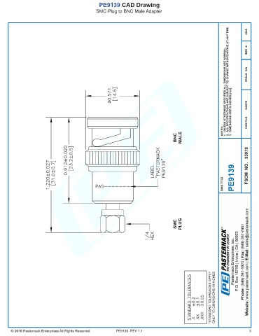 PE9139 CAD Drawing SMC Plug to BNC Male Adapter PE9139 REV 1.1 3