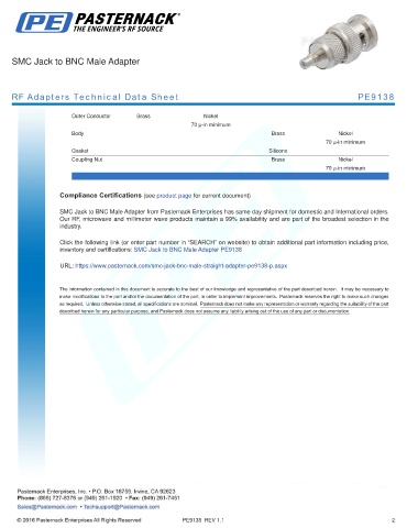 URL: https://www.pasternack.com/smc-jack-bnc-male-straight-adapter-pe9138-p.aspx