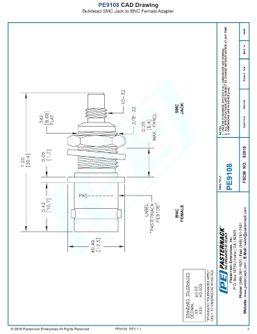 PE9108 CAD Drawing Bulkhead SMC Jack to BNC Female Adapter PE9108 REV 1.1 3
