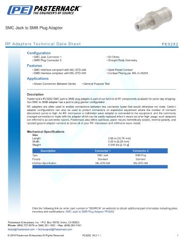 RF Adapters Technical Data Sheet PE9282
