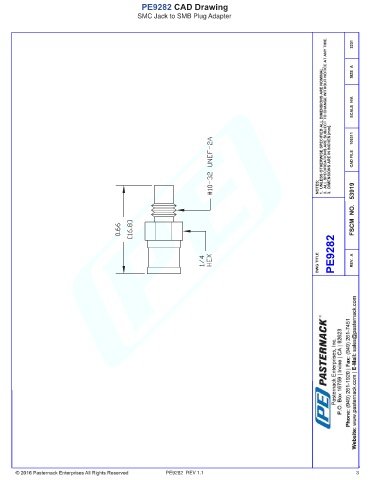 PE9282 CAD Drawing SMC Jack to SMB Plug Adapter PE9282 REV 1.1 3