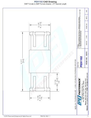 PE91102 CAD Drawing SMP Female to SMP Female Adapter .377 Special Length © 2013 Pasternack Enterprises All Rights Reserved PE91102 REV 1.1 3