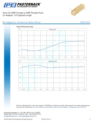 inventory and certifications: Push-On SMP Female to SMP Female Push-On Adapter .370 Special Length PE91072