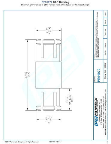 PE91072 CAD Drawing Push-On SMP Female to SMP Female Push-On Adapter .370 Special Length PE91072 REV 1.1 5