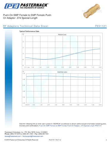 inventory and certifications: Push-On SMP Female to SMP Female Push-On Adapter .374 Special Length PE91101