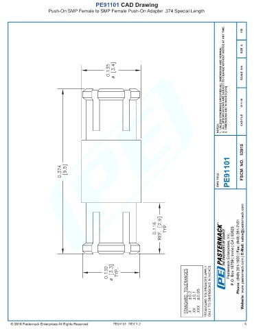 PE91101 CAD Drawing Push-On SMP Female to SMP Female Push-On Adapter .374 Special Length PE91101 REV 1.2 5