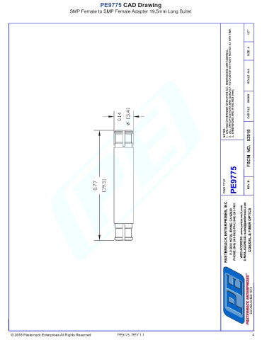 PE9775 CAD Drawing SMP Female to SMP Female Adapter 19.5mm Long Bullet PE9775 REV 1.1 4