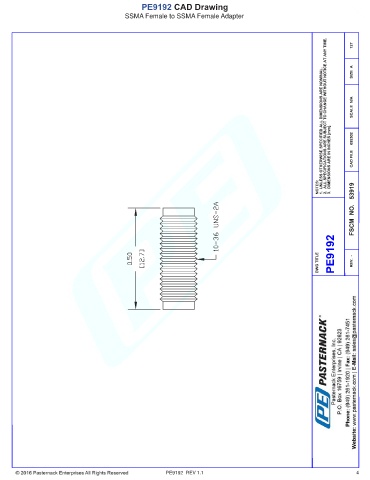 PE9192 CAD Drawing SSMA Female to SSMA Female Adapter PE9192 REV 1.1 4