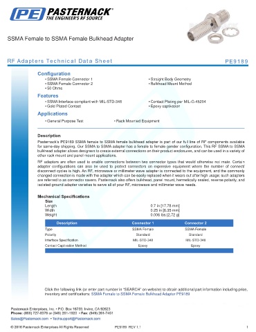RF Adapters Technical Data Sheet PE9189