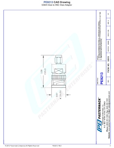 PE9213 CAD Drawing SSMA Male to BNC Male Adapter © 2013 Pasternack Enterprises All Rights Reserved PE9213 REV 3