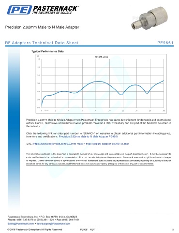 inventory and certifications: Precision 2.92mm Male to N Male Adapter PE9661