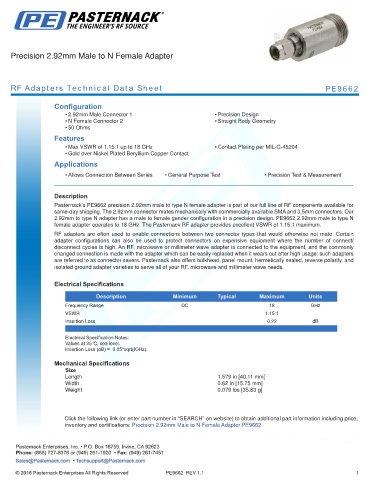 RF Adapters Technical Data Sheet PE9662