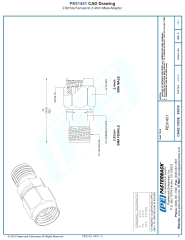 any representation or warranty regarding the suitability of the part described herein for any particular purpose, and Pasternack does not assume any liability arising out of the use of any part or documentation.