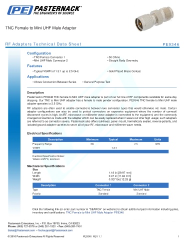 RF Adapters Technical Data Sheet PE9346
