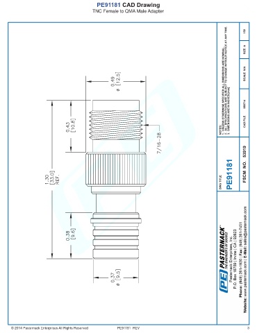 PE91181 CAD Drawing TNC Female to QMA Male Adapter © 2014 Pasternack Enterprises All Rights Reserved PE91181 REV 3