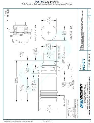 PE91073 CAD Drawing TNC Female to SMP Male Limited Detent Bulkhead Mount Adapter PE91073 REV 1.1 5