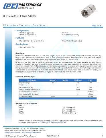 RF Adapters Technical Data Sheet PE91487