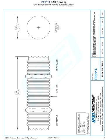 PE9114 CAD Drawing UHF Female to UHF Female Bulkhead Adapter PE9114 REV 1.1 4
