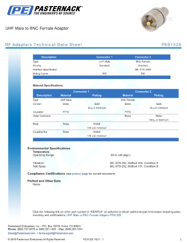 RF Adapters Technical Data Sheet PE91328