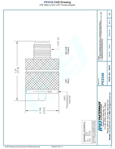 PE9348 CAD Drawing UHF Male to Mini UHF Female Adapter PE9348 REV 1.1 3
