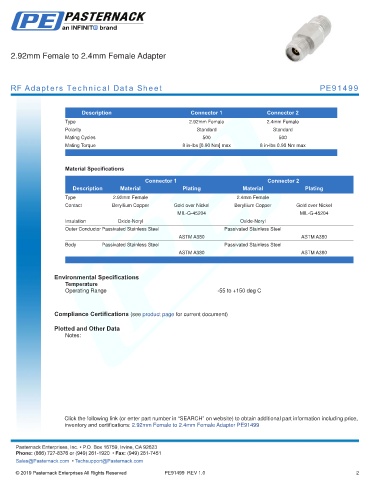 inventory and certifications: 2.92mm Female to 2.4mm Female Adapter PE91499