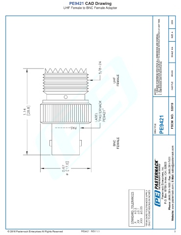 PE9421 CAD Drawing UHF Female to BNC Female Adapter PE9421 REV 1.1 3