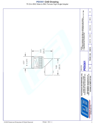 PE9361 CAD Drawing 75 Ohm BNC Male to BNC Female Right Angle Adapter PE9361 REV 1.1 4