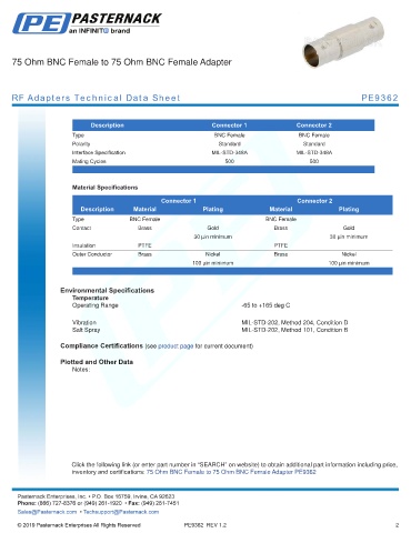 inventory and certifications: 75 Ohm BNC Female to 75 Ohm BNC Female Adapter PE9362