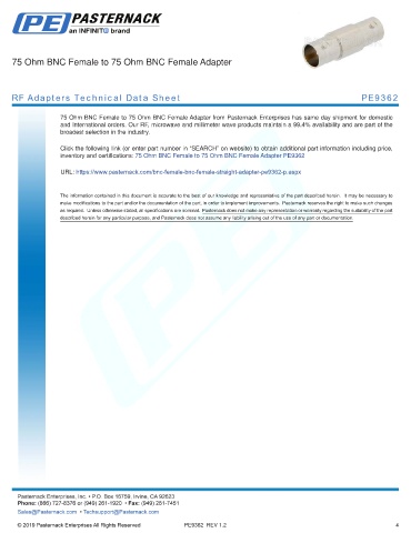 any representation or warranty regarding the suitability of the part described herein for any particular purpose, and Pasternack does not assume any liability arising out of the use of any part or documentation.