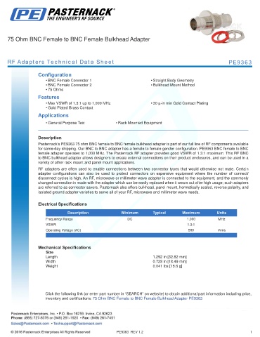 RF Adapters Technical Data Sheet PE9363