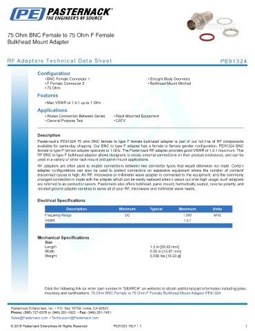 RF Adapters Technical Data Sheet PE91324