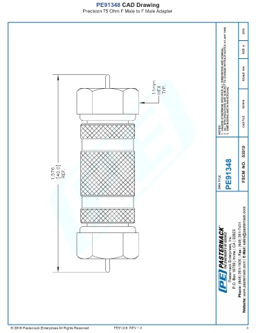 PE91348 CAD Drawing Precision 75 Ohm F Male to F Male Adapter PE91348 REV 1.0 3