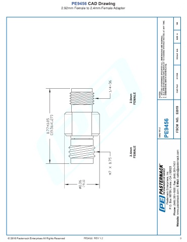 PE9456 CAD Drawing 2.92mm Female to 2.4mm Female Adapter PE9456 REV 1.2 3