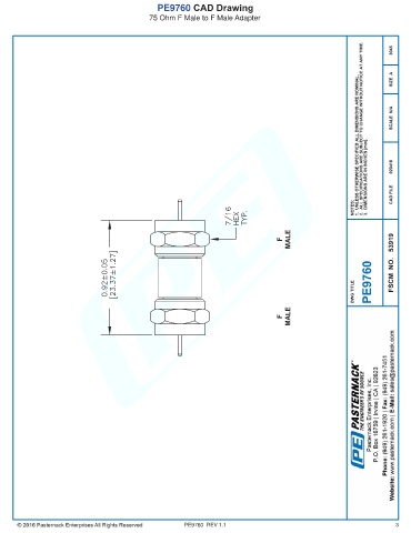 PE9760 CAD Drawing 75 Ohm F Male to F Male Adapter PE9760 REV 1.1 3