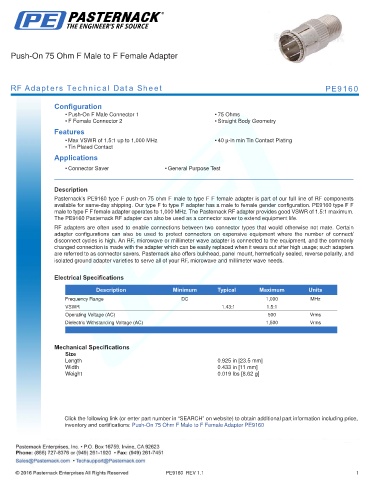 RF Adapters Technical Data Sheet PE9160