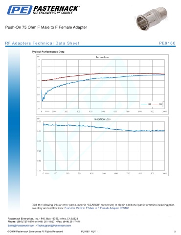 inventory and certifications: Push-On 75 Ohm F Male to F Female Adapter PE9160