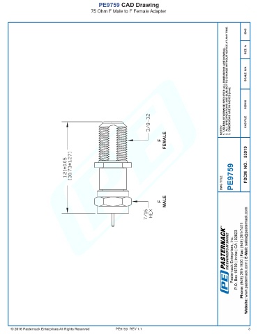 PE9759 CAD Drawing 75 Ohm F Male to F Female Adapter PE9759 REV 1.1 3