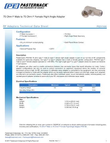 RF Adapters Technical Data Sheet PE9166