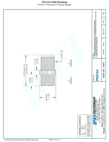 PE9164 CAD Drawing 75 Ohm F Female to F Female Adapter PE9164 REV 1.1 3
